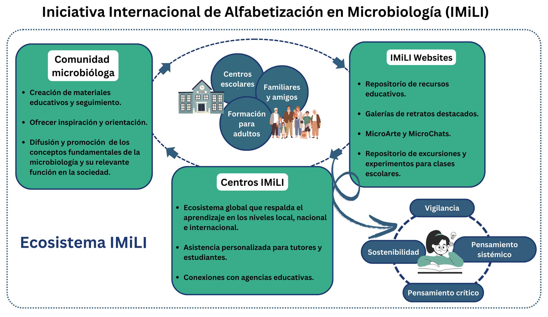Los microorganismos desempeñan un papel crucial en nuestras vidas, los ecosistemas y el planeta a través de sus contribuciones a la producción de alimentación, el mantenimiento de los ciclos biogénicos de los elementos, la medicina, el agua limpia, la descarbonización y la sostenibilidad. A pesar de su importancia, los microorganismos a menudo se pasan por alto debido a su invisibilidad. La Iniciativa Internacional de Alfabetización en Microbiología (IMiLI) tiene como objetivo mejorar la alfabetización mundial en microbiología mediante la creación de recursos educativos centrados en el alumno y socialmente relevantes que enfatizan la sostenibilidad, las necesidades sociales y el pensamiento crítico.